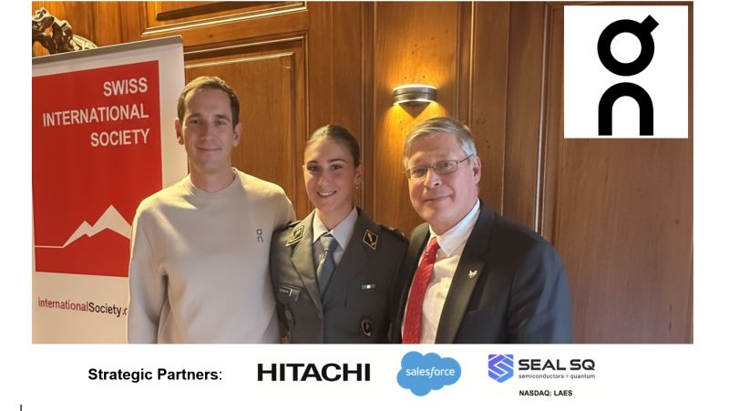 Pictured (from left to right): Martin Hoffmann, Valentina Rosamilia (Olympian, On Ambassador), Philippe D. Monnier (President of the Swiss International Society).